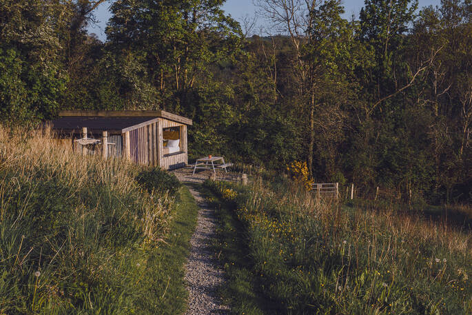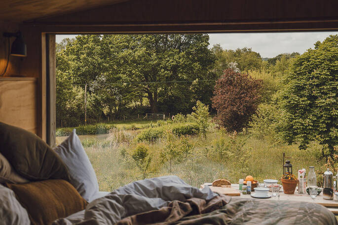 Best of all, is the wild-swimming pond on site, where you can jump off the jetty right into the water – or enjoy your morning yoga on it, surrounded by calm waters. Whilst there’s plenty to find nearby, you’ll probably be too busy enjoying the calm of the site, swinging in the hammock, playing lawn games or heading to the communal space (shared with the other cabins) to grab a board game. It’s also there you’ll find the onsite shop, to pick up some supplies for your stay.