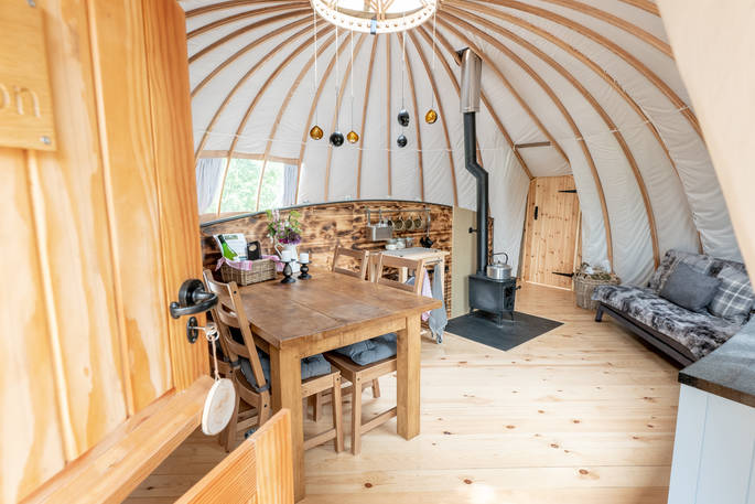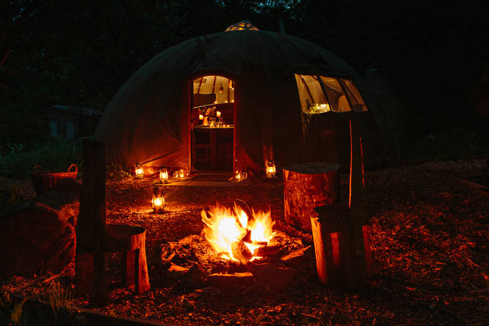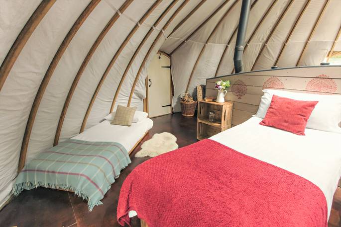 Penhein is the project of Helen who chose to leave London in 2011 to return to the farm which has been in her family for five generations. She wanted to share her family's little Welsh haven with the world. Near the Wye Valley, nestled in a three-acre ancient woodland over 600 metres from the farmhouse, you'll find eight wildflower meadow-dwelling alachighs (pronounced al-la-cheegs). Persian in design but Welsh in spirit, each one has an individual colour scheme and its own unique charm.