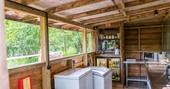 - Communal cooking area in the centre of the site know as the ‘Cheat’s Kitchen’ equipped with familiar mod-cons like microwave, toaster, kettle, halogen hobs, fridge and freezer