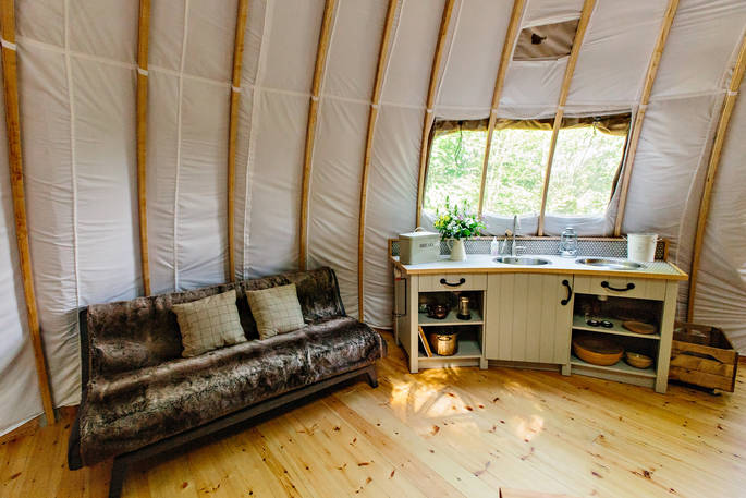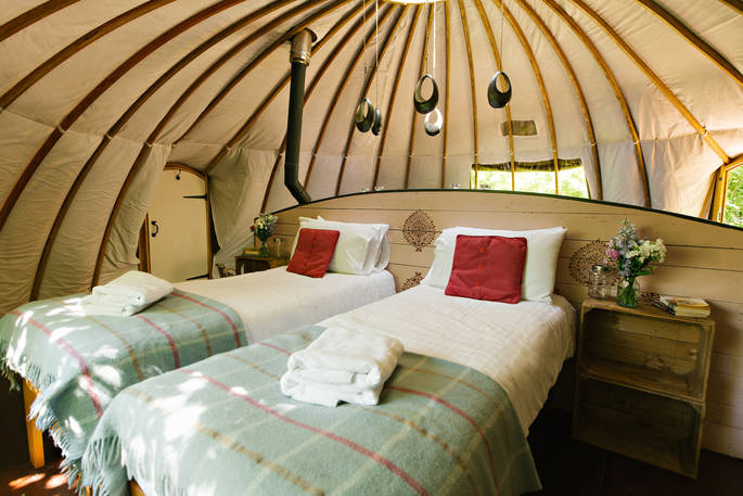Penhein is the project of Helen who chose to leave London in 2011 to return to the farm which has been in her family for five generations. She wanted to share her family's little Welsh haven with the world. Near the Wye Valley, nestled in a three-acre ancient woodland over 600 metres from the farmhouse, you'll find eight wildflower meadow-dwelling alachighs (pronounced al-la-cheegs). Persian in design but Welsh in spirit, each one has an individual colour scheme and its own unique charm.