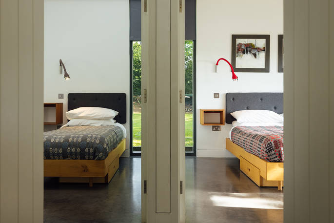 The views of the Wye valley captivate you through the floor-to-ceiling glass doors, but you can also throw them back to let the fresh country air in or yourselves out for al fresco meals on the terrace. There are two private acres where kids, big or small, can play safely, and a wood to wander through, under the swaying canopies of ancient trees. You can hit the Wye valley for canoeing and caving, strike out on foot to the local pubs or raid the farms shops for BBQ ingredients, coming home to sit by the fire pit and relive the day’s adventures in your own private piece of paradise.