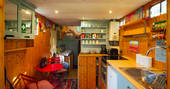- Kitchen equipped with electric hob, kettle, fridge, Belfast sink with hot and cold water