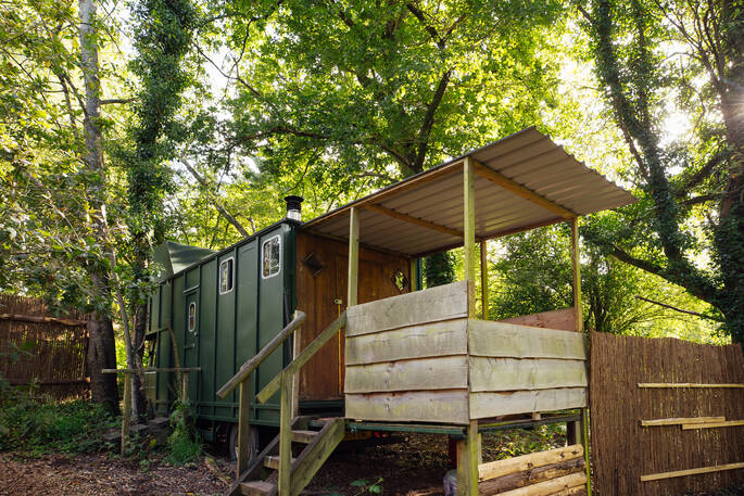 At the heart of The Hop Garden at Kingstone Brewery sits Pioneer the hardy converted horsebox. During the winter months warmth won’t be a problem, with the cosy bed up a ladder above the cab, the wood-burner crackling in the corner and Kingstone Brewery on hand to supply you with that special inner glow. As part of a constantly evolving site, you’ll spot the greenhouses on the way in, still being fashioned for purpose. Keen to leave the area to rewild, owners Ed and Tori are busy running the brewery, and home schooling six kids respectively – so if nowhere to be found, send them a text with any queries. The beer is Ed’s domain and if you can find him, he’ll can show you round and talk you through the art of brewing. Ask about the brewery shop too, where you can also pick up ales, cider and local wines; or just meet the other connoisseurs staying on the property.
