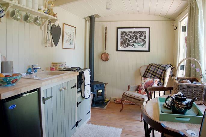 - Wood-burner inside the shepherd's hut