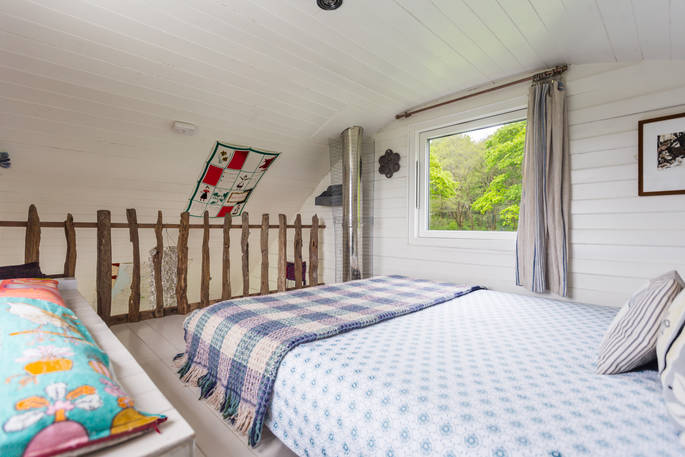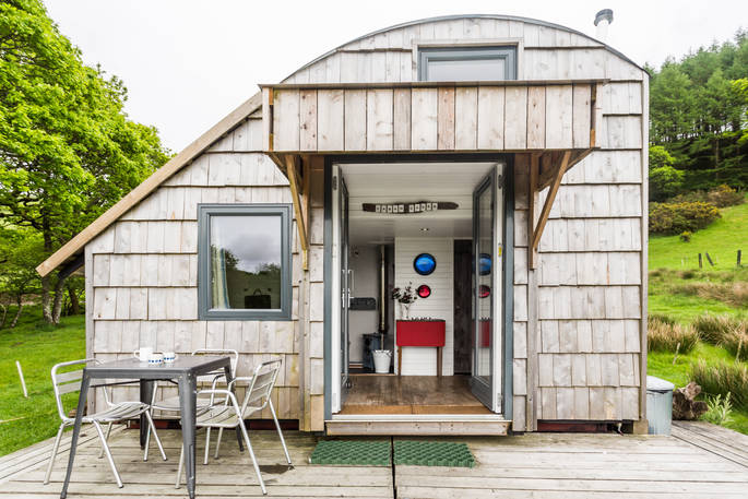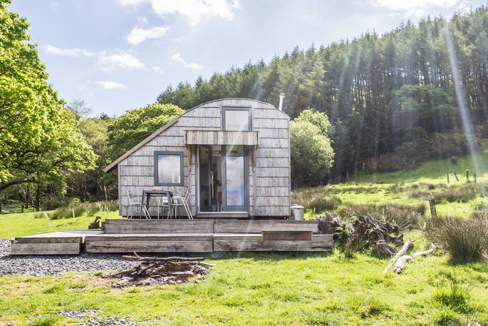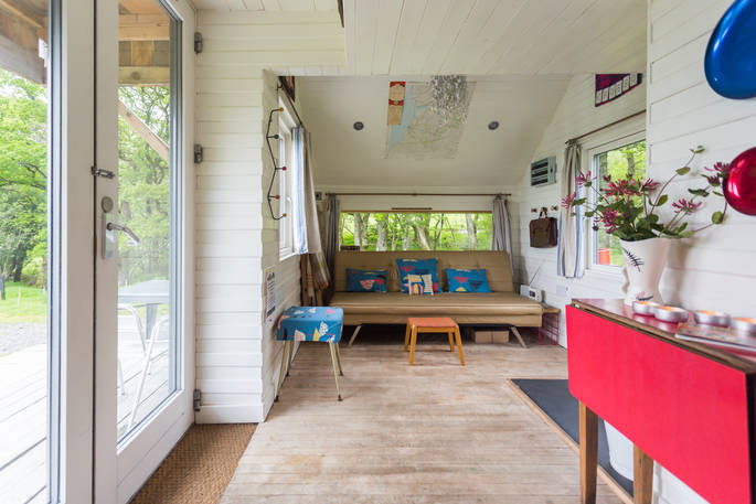 A return to Cabin Cader is the perfect end to a day of exertion. The en suite shower, compost loo and built-in kitchen mean you don’t have to go outside again if you don’t want to, but there’s a firepit just off the deck, those amazing views and the starlit skies to tempt you back into nature. The cabin is a light and spacious construction, made of an eclectic collection of found objects and restored parts, not least the floorboards from a former BBC studio. After an evening lounging on the sofabed, freshly steamed and invigorated from a bookable spot in the sauna and plunge pool, you can clamber up to the double bed in the ‘sleeping loft’ and rest up ready for more adventure in the rugged hills of Wales.