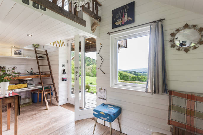 The view from Caban Cader is very beautiful. The cabin is really cosy and I quite enjoyed the climb up to the bed. Sofa bed my friend slept on was comfy too. Dafydd was very helpful about the local area. You can get there by foot by walking from the Abergwydol bus stop if you don’t have a car with you. Walking on the Glyndwr trail into Machynlleth was wonderful- the views are something else, but some of the downward bits might be a bit unenjoyable if it’s really raining. Really peaceful, lovely place to stay.