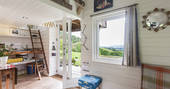 The stunning valley stretches out from the deck of Caban Cader, inviting you to venture out from your hilltop hideaway among the scattering of Beudy Banc cabins. Custom-made downhill bike trails thread through the woods and there are maps in the cabin for hikes across the valley and all the way down to Machynlleth five miles away, where you can find great pubs, restaurants and craft shops. You could even head out to the coast and brush up on your surfing.