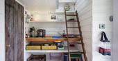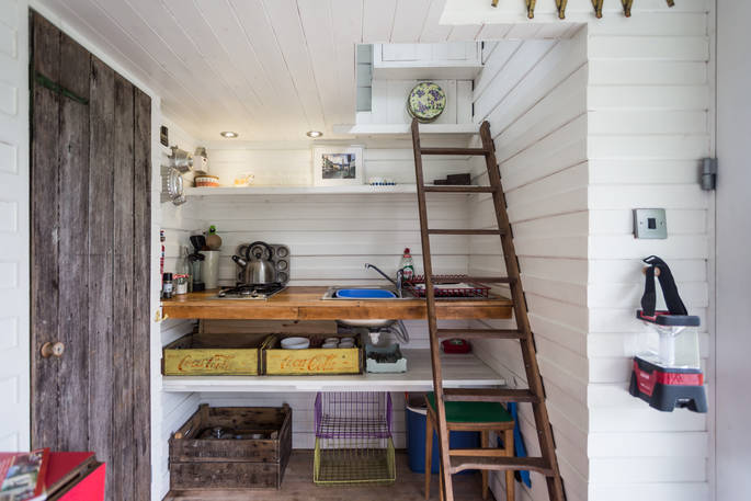 - Kitchenette with a two-ring gas hob, kettle and cool box