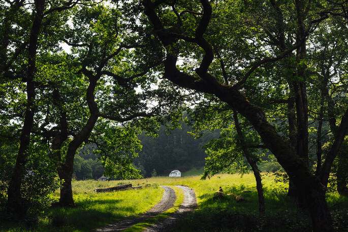 Cwm Llywi is a 470 acre working organic hill farm located within the Dyfi Valley three miles from the town of Machynlleth. The farm's topography ranges from wooded valleys to hilltops with spectacular views over the valley and beyond to the Aberdyfi Estuary and the Cadair Idris range of Mountains.