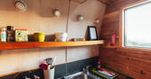 - Kitchenette equipped with a dual-ring gas hob, kettle and cool box