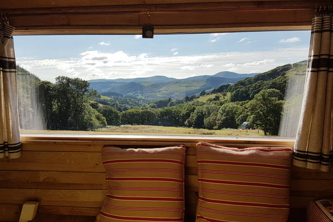 3 glorious nights in the cabin - quirky, fun, comfy, cosy. Evening campfire and sunsets over Cader Idris. Views out over the mountains was wonderful. Exploring the area helped so much by the wonderful guides provided by the hosts. A very beautiful area. We loved watching the RAF jets practice their low flying through the valley - others may think it takes away from the peace!