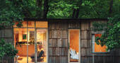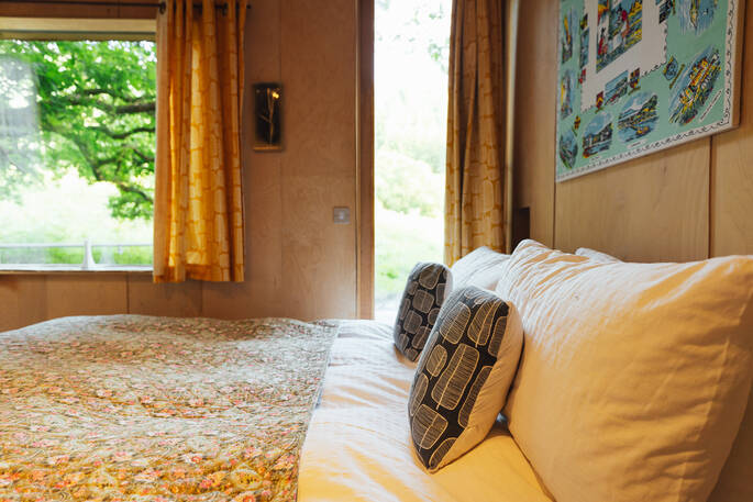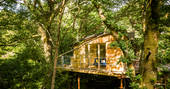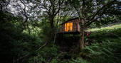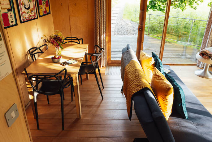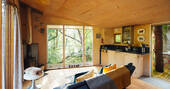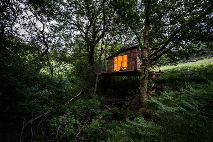 You’ll find the treehouse tucked into a forested corner of Beudy Banc, about 200m from the nearest of the farm’s scattering of cool cabins. There’s a double bed in the room to the rear and the sofa bed for kids in the main living area. The whole space is kept toasty by a big wood burner and modern facilities in the kitchen and bathroom mean you’ll have some much-needed comfort after a day out exploring. You’ll also have the chance to wildlife watch in a couple of ways – first while lazing out on the deck and second while lazing on the sofa, looking down through the window in the floor.