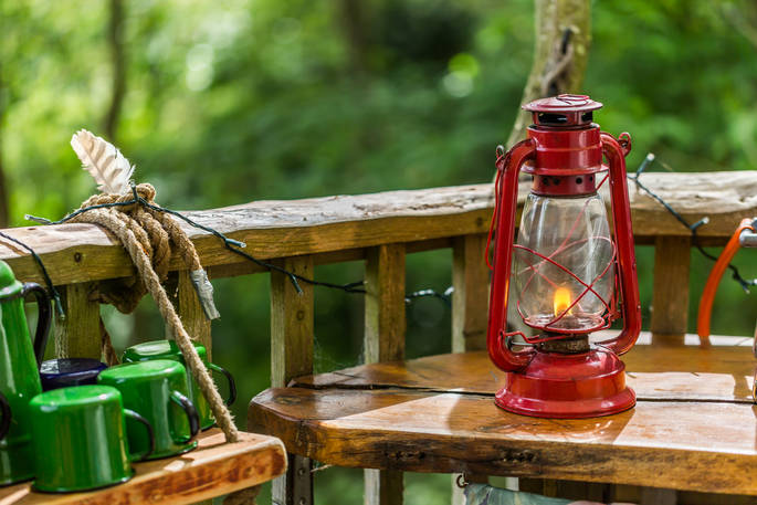 - Solar powered fairy lights candelabra inside and outside around the deck