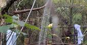 From the parking area, it is a short walk to the space which involves crossing a narrow log bridge and navigating uneven ground - flat, waterproof shoes or walking boots are recommended.