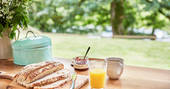 A welcome hamper on arrival filled with lots of local produce and wildflowers
