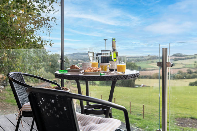 Beautiful and peaceful break! The cabins are situated up a hill in a rural setting and are a good size. The welcome pack was perfect and a nice little touch. We stayed during high temperatures so it would have been helpful to have a fan as there are no blinds/curtains to block the sun so it was very hot during the night The town is only a 10 minute drive away and has everything you need and some great places to eat. Lake Vrynwy was also a short drive away with lots to see and do. The views from the cabin are incredible and breathtaking! It was amazing waking up to such a sight and sitting on the balcony just taking it all in. If you’re looking for some down time this is the perfect place. Would definitely recommend
