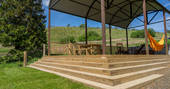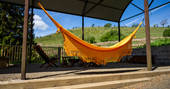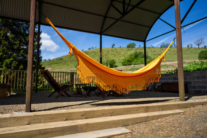 - The hammock and outdoor blankets can be found in the wooden settle in the sitting room