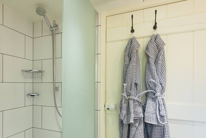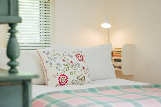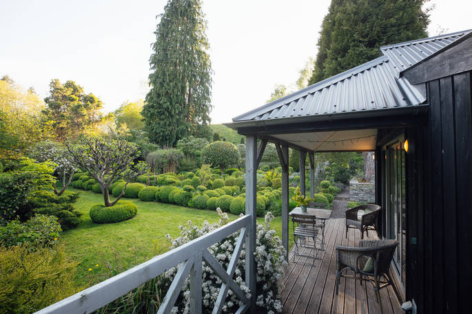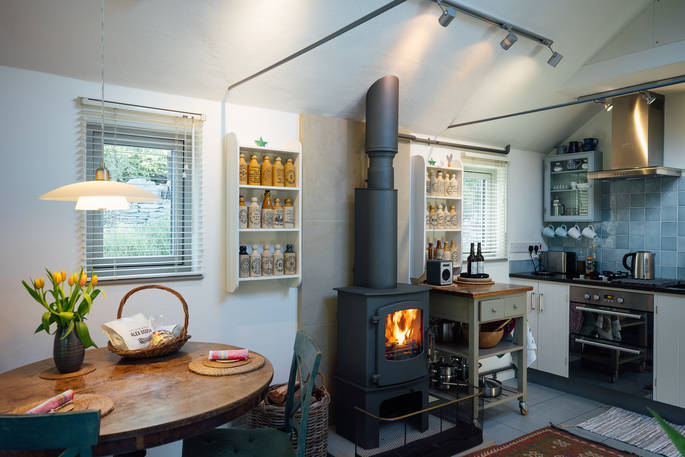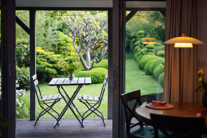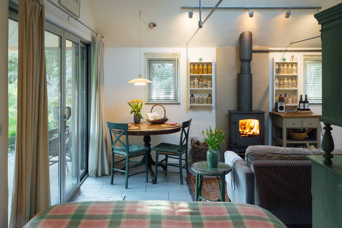 From the outside, you’d be forgiven for thinking that Plas Bach (little palace in Welsh) belonged to an old-world local Welsh shepherd with its black tin exterior and stained boards. Indeed, the little stream over to Lower House marks the border from England into Wales. Even inside, Plas Bach still has a traditional feel with a green painted vintage dresser and other vintage furnishings. If you look closely though, it’s actually a state of the art example of modern eco living, designed and built by Pete himself with features like sheep’s wool insulation in the walls, recycled spun glass insulation beneath, and triple-glazed, argon filled windows. It’s also indulgently fitted with oodles of modern luxury, from a flat screen TV and WiFi to a spacious wet room with local handmade soap, and comes with its own gravelled courtyard and elegant box garden separating it from the main house. Have breakfast on the veranda overlooking the garden and stream, and tuck into the thoughtfully provided basket of local treats.