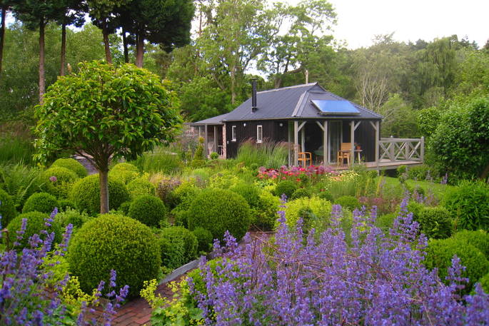 Plas Bach is set in a 7 acre self-contained valley, made up of romantic garden, small fields, orchard, wood, stream, wildlife pond & wild garden. The exceptional garden, created by Nicky and Pete, and now maintained entirely by Pete, has been featured in many national magazines. Plas Bach was designed by Pete and rebuilt on the site of a former large garden building a few years ago.