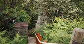 - There are approx. 15 steps up to the bothy. Guests could potential avoid this by following the mown path from the gate, around the pond to reach the decking. The path descends then inclines before reaching the three or four steps onto the decking