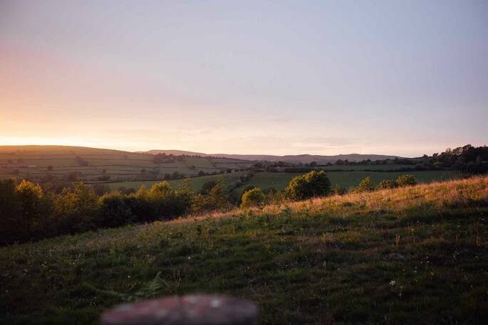 The Begwns National Trust Common (10-minute walk) - a vast, open expanse of gently rolling hills and wildflower-strewn grassland, offering panoramic views across the Brecon Beacons and Radnorshire Hills, where ponies roam freely, sheep graze undisturbed, and walkers can enjoy peaceful, uncrowded trails beneath wide skies and stunning sunsets, all crowned by the iconic Roundabout, a circular clump of trees planted to mark Queen Victoria’s Diamond Jubilee.