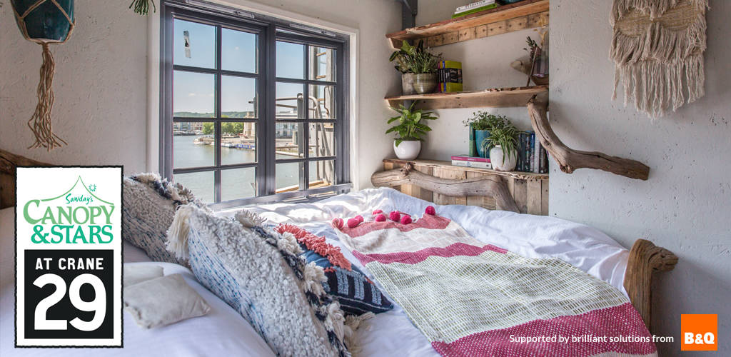 With some of the best views in Bristol, Canopy & Stars at Crane 29 provided an utterly unique nature inspired sanctuary. When guests stepped inside they found surprising multi-sensory experience of woodland scents, forest sounds and earthy textures. We took care of every comfort, from the sofa looking out over the waterfront to the hammock and the big double bed. We filled the space with essential oils, scented shower steamers and the sound of birdsong. We borrowed, we recycled and we created until we had a space that reflected everything we love, from the watering can shower head to the deep, melting pillows.