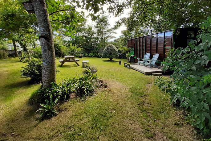 Once hidden among the ferns, Prudence is a restored gypsy wagon with a sweet backstory and a meadow all to herself. Named after the land’s former owner, her photo and writing still live inside. It’s run by Keith and Ginnette, nature lovers who’ve created a wild haven where owls call through the night, deer roam the fields. With no chemicals used on the land, and solar lighting keeping things gentle, it’s a true off-grid escape. Paddle in the stream, walk to the beach, then return and stargaze in one of Cornwall’s least light-polluted skies.