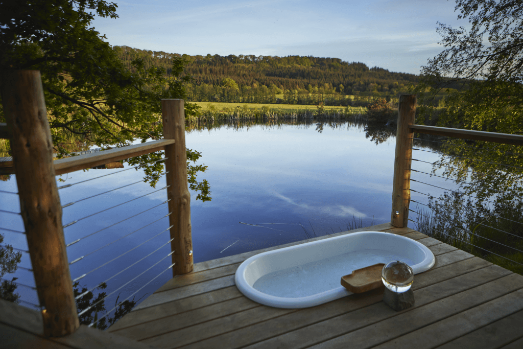 Described by one guest as ‘a mixture of log cabin and spa retreat’, Eden Vale Lodge has so many places to relax that you might forget to explore the gorgeous Cumbrian surroundings. From the vast handmade bed and crackling wood burner to the warm outdoor tub, private sauna and hanging chair on the deck, it’s the perfect cabin for slow living.