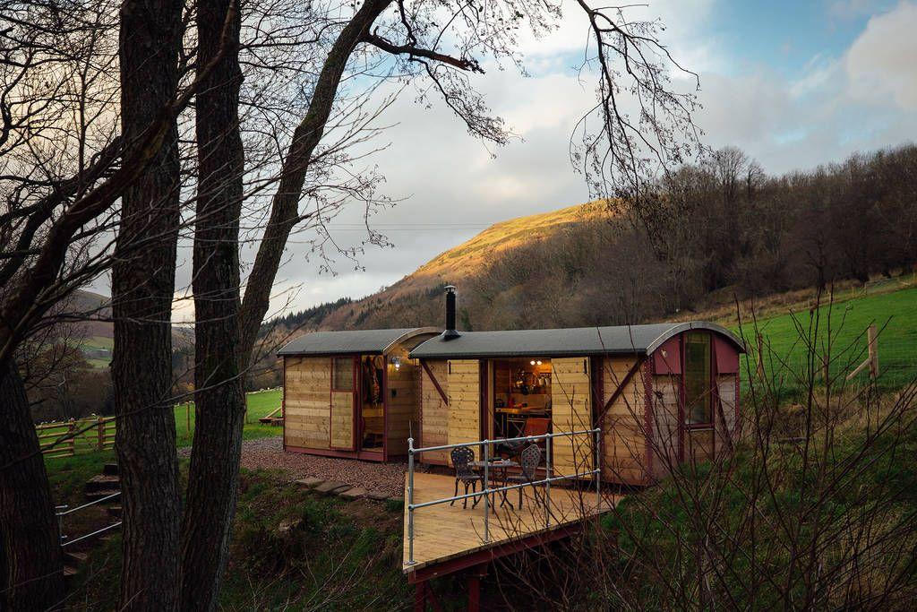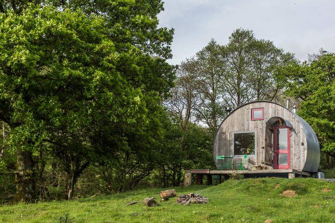 Caban Crwn is a curious combination of simple frontier cabin and cheery, colourful beach hut. The broad deck, plain wooden frontage and simple firepit make you think wilderness, while the striped fabrics of the interior and the burgundy paint of the wood-burner are much more ‘cosy cottage’. Hiking or biking is a must while staying here. The downhill bike trails are spectacular and you’re within striking distance of the famous Howie’s Endero route. Machynlleth is just five miles away for a stop in a great country pub.