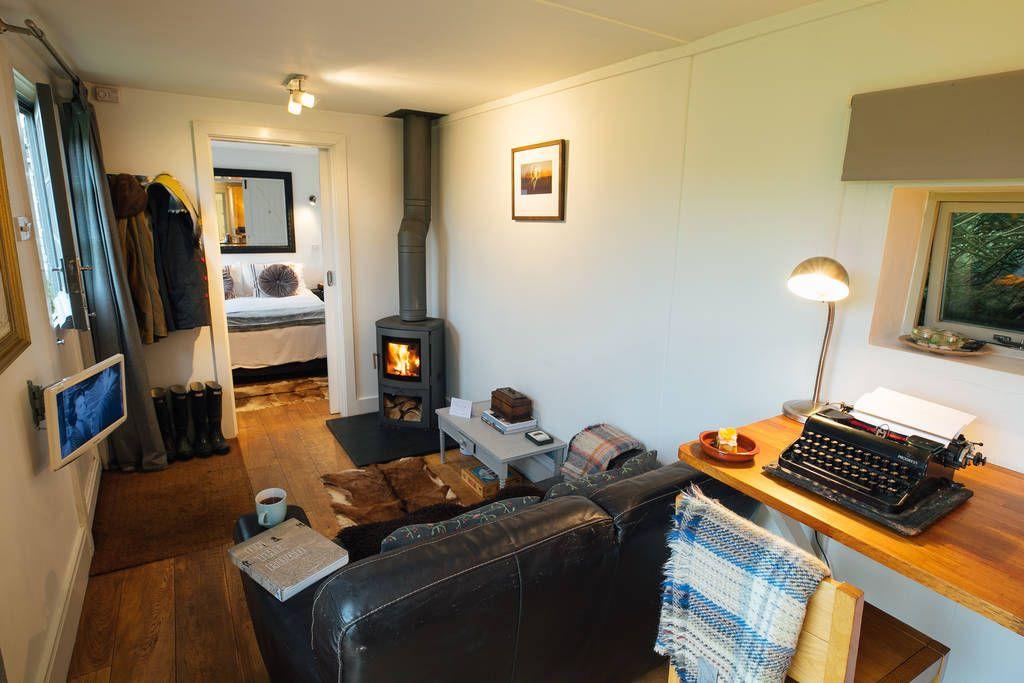 An unassuming white shack on the outside, the compact interior has been given a full, contemporary makeover and plenty of little luxuries. There’s a romantic wood burner for the cooler evenings as well as electric radiators throughout, and a mini kitchen with oak breakfast bar and views of the bay. The bathroom has a beautiful double-ended bath and a nautical porthole window, with the faint sound of the waves lapping below as you drift off.