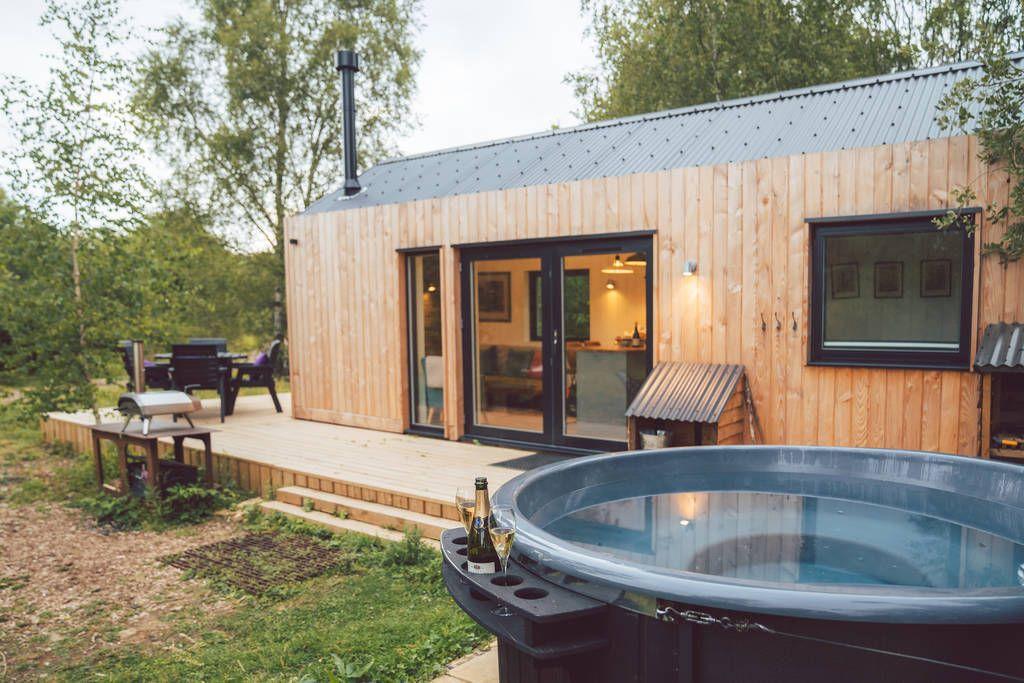 As if straight from a storybook, Birch View cabin springs out from a patch of white birch trees and wild strawberries at the end of an old runway. With a large deck, and hot tub that fits four to six, it lends itself to a comfortable family stay, or a luxurious escape for two. With 90-acres of grassland, thick scrub and woodland, left to rewild and diversify after WW2, you can explore to your heart’s content the bounty of wildlife that’s reclaimed the area. At the end of the day, retire back to the cabin, where all your basic needs have been considered. A fully working kitchen, firepit with grill and a wood fired pizza oven for any culinary experiments.