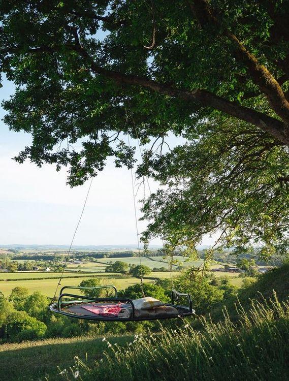 Outside, a huge circular swing faces the wide Devon sky while the surrounding countryside stretches uninterrupted between Dartmoor and Exmoor. Guests often speak about the quiet sense of perspective the landscape creates. One visitor described how “the lifestyle that Alison and Scott have built for themselves is truly inspiring and helps to reignite a different view of how to live your life.” Design, in other words, begins with atmosphere.