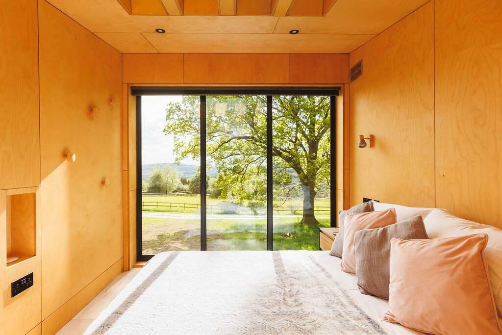 Perched on the edge of ancient woodland, Fifinella Retreat combines forest calm with rolling Herefordshire hills. Huge glass windows flood the space with light, while outside you’ll find a hot tub among the trees and a deck made for sunset gazing.