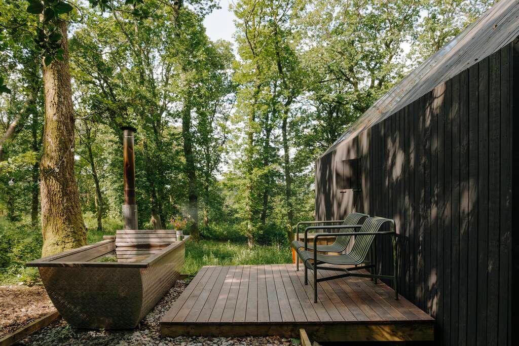 Set beside a wildlife pond, Lark is as peaceful outside as it is stylish inside. Wake to birdsong, cook campfire coffee and bacon, then slip into the handsome outdoor tubs for a soak with forest views. Families will love the clever bunk tucked into the hallway and the roomy open-plan kitchen-living space.