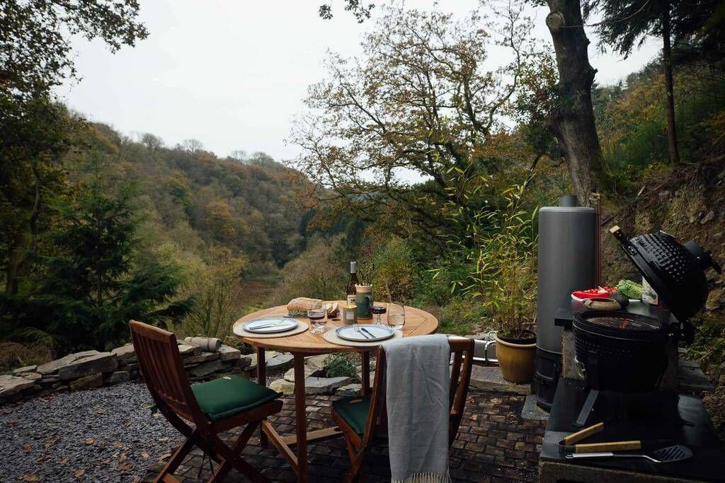Perched among an apple orchard, cosy Lichen Cabin is designed around life’s simple pleasures with heaving bookshelves, board games, cards and a guitar to strum by the campfire. Outside, you can relax on the south-facing deck or stroll around the Wye Valley Sculpture Garden which is filled with owner Gemma’s artwork. Beautiful Tintern Abbey is at the other end of the village, The Wye Valley walk is two minutes away and Offa’s Dyke National Trail is close by.