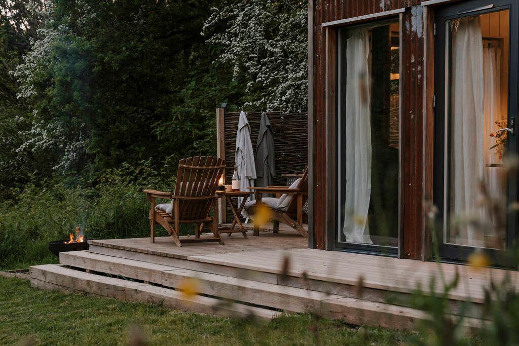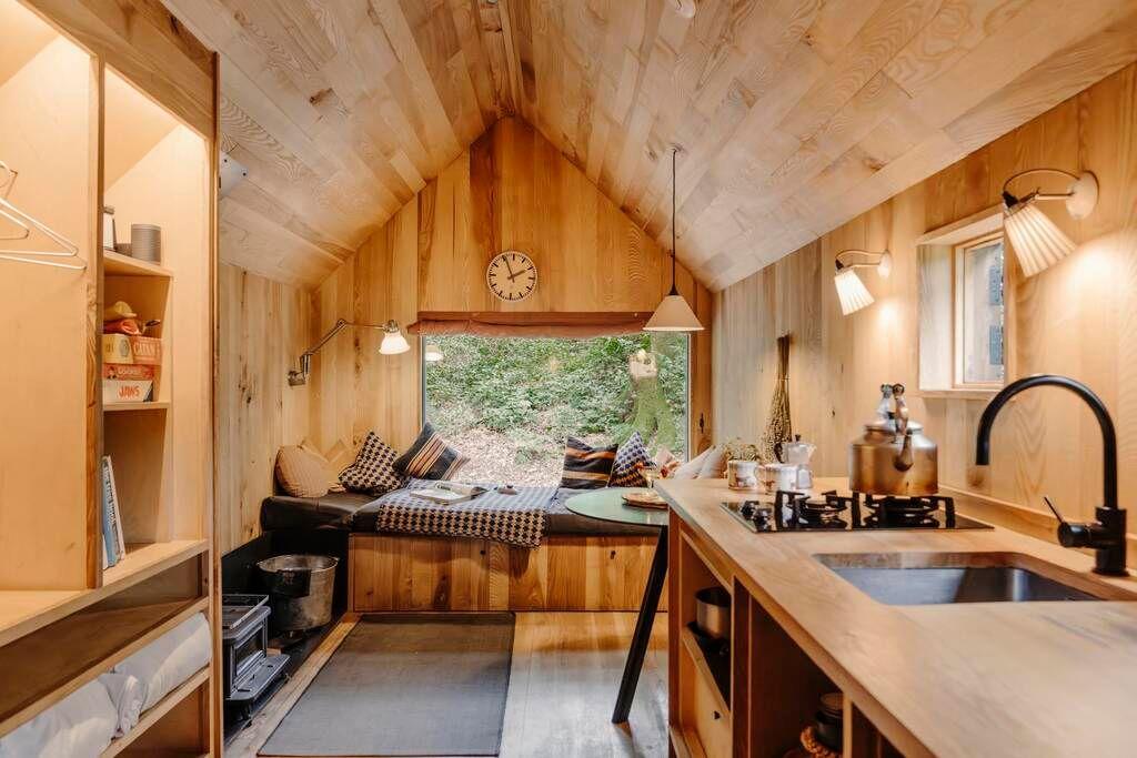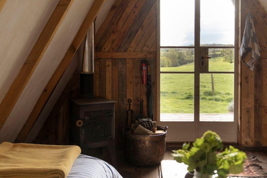 With a huge Swedish bath steaming on the deck, a double hammock and an outdoor pizza oven, you’ve got everything you need for deep relaxation and there’s no one around to disturb the peace. The playful design features will put a smile on your face, especially the three quirky little windows by the sleeping area, each with a different style of shutter to block the light out. Stargazing by the firepit with a local cider at night will reset your system to seriously mellow.