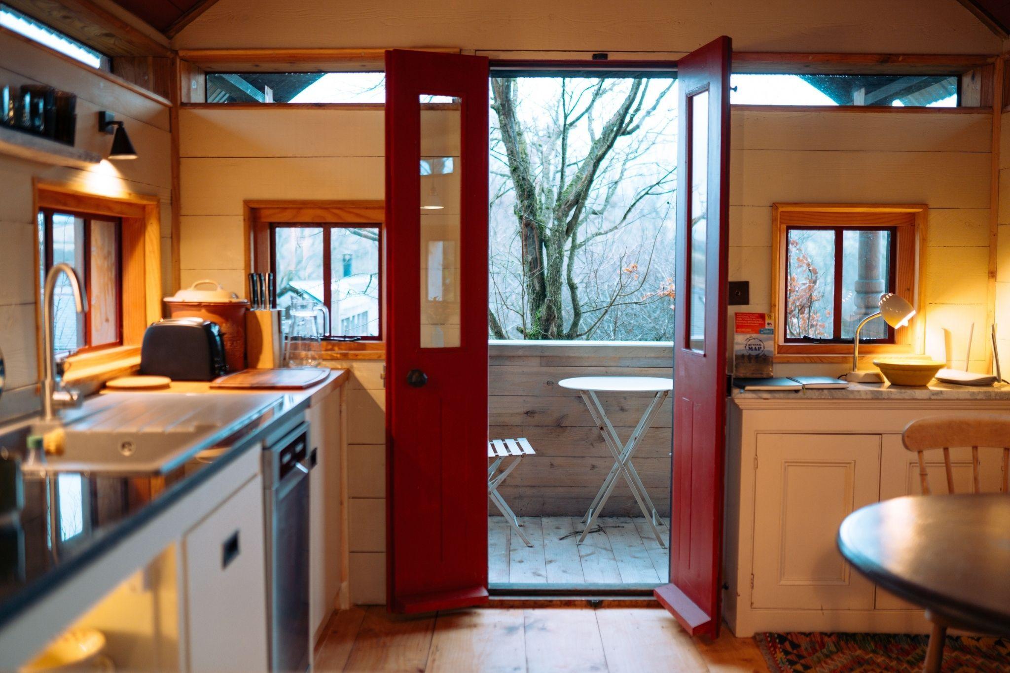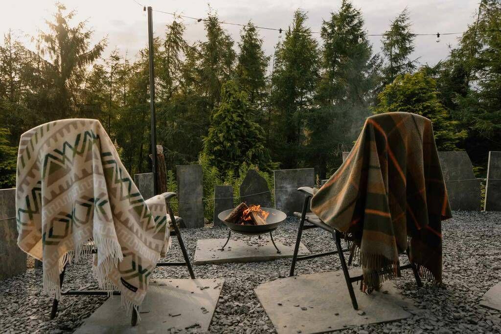 Explore the hills by day or wander the nearby Glyndwr Way trail, then return to cook over the firepit and watch sparks rise and sip something local on the deck.