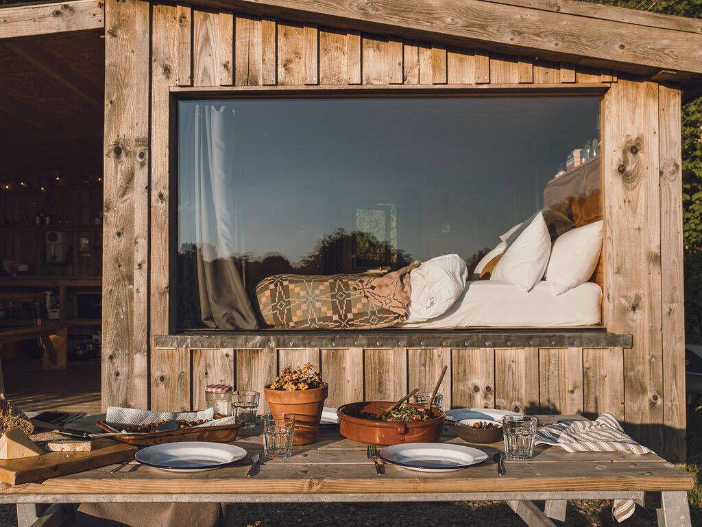 Out on the covered deck, there’s a bathtub for soaking under the stars and loungers for watching the sun melt over the meadows. Bring your favourite wine and playlist.