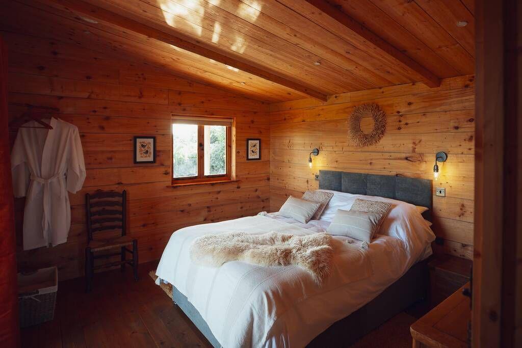 The Lookout is where romance and rewilding meet. Set on a private nature reserve, this Welsh-Scandi inspired cabin comes with a firepit, wild swimming pond and wood-fired baths for slow, luxurious evenings.