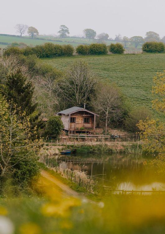 Hand-built from local Norwegian Spruce, this lakeside cabin in Herefordshire is a peaceful, wildlife-rich hideaway on a 200-acre organic dairy farm. Spot deer and buzzards, relax by the water, or swing on the covered bench with sunset views over the lake.