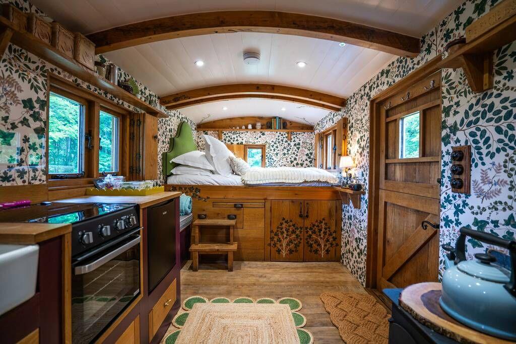 Set on the Pennine Way and facing the hill that inspired Wuthering Heights, it’s a retreat for walkers, writers, and wistful hearts. Hike to the Brontë waterfall, then return and curl up by the wood burner with a good book. If you sit outside as light fades, you’ll catch stars blinking through the canopy.