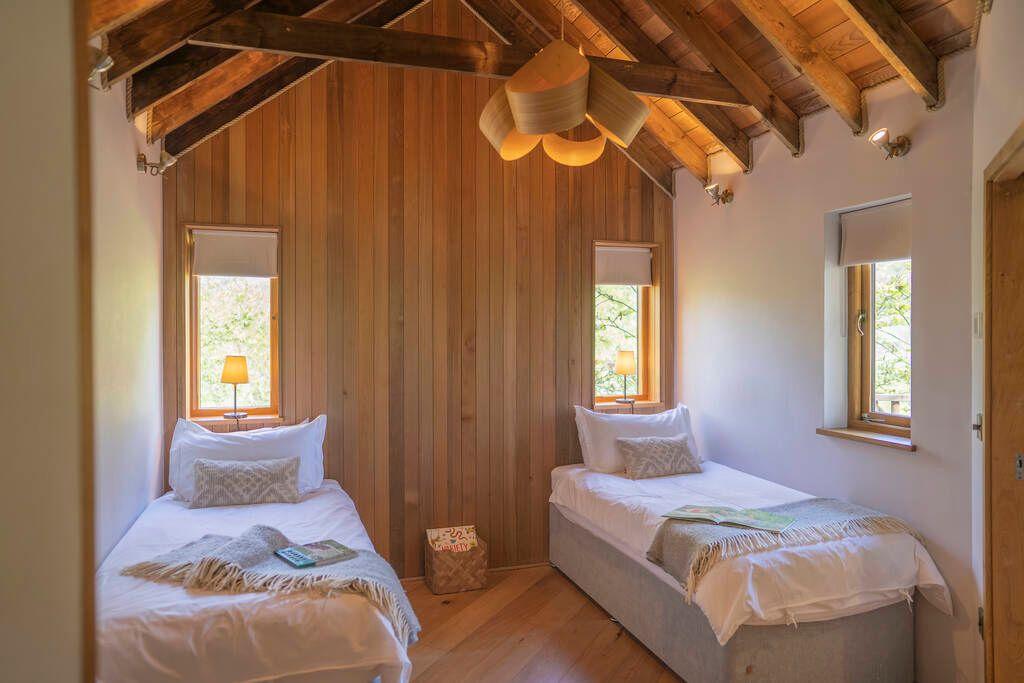 Tucked into a clearing in the woods, Fuggle Treehouse looks as though it grew straight out of the forest itself. Its curving wooden frame and wonky lines set the scene for proper family escapism, while inside you’ll find space for six with king-size beds, a children’s bunk and creative cosy nooks that any child will love.