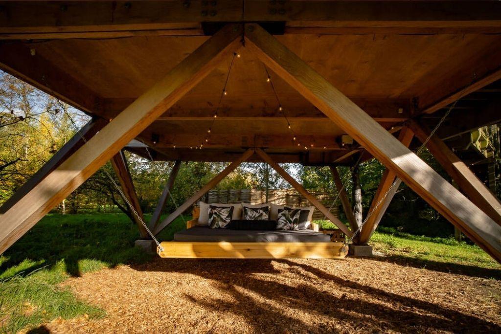 Like a glamping version of Russian dolls, The Oakey Koakey has a kids’ room that looks like another mini treehouse with a branch ladder for the bunk beds and bird box hangers. The owners know that easy bedtimes make for happy glampers.