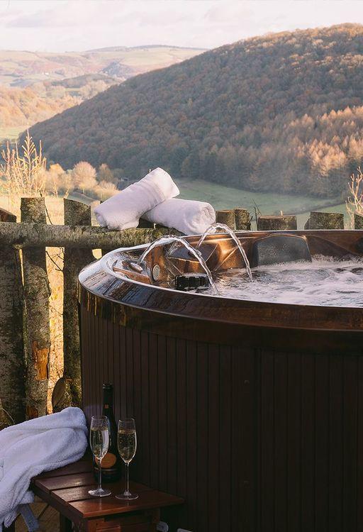 You get a sense of space and expansiveness in the rolling landscape of Powys. An urge to linger among the green hills and watch the sheep amble past as you inhale deep lungfuls of fresh Welsh air. Stay in one of our glamping places with a hot tub and you can relax for hours in the warm water gazing at those gorgeous views. By night, the dark skies overhead provide the perfect backdrop for an epic celestial display, and perhaps even a tantalising glimpse of the Northern Lights from the Brecon Beacons National Park. Take a look at our glamping spaces in Powys with hot tubs.