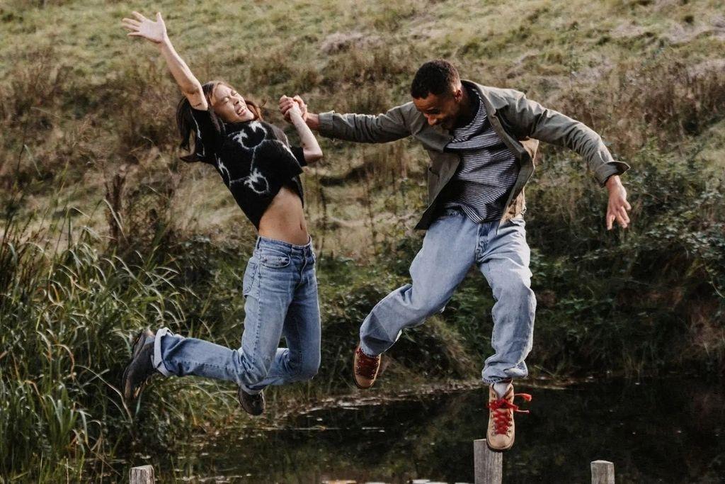 Unmissable romantic moment: Jumping into the river for a wild swim together at golden hour.