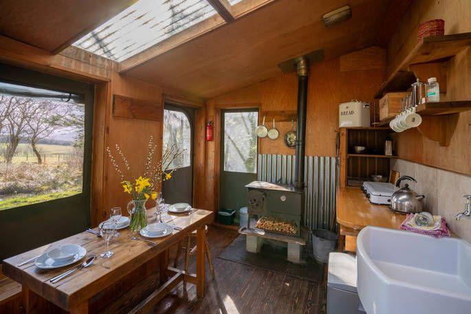 The simple, homely style of Old Orchard shepherd’s hut perfectly suits its location on a community farm near Exeter. Owner Andy was an early convert to organic farming and in his capable hands West Town Farm has become a thriving organic beef and pig farm, sustainably producing high-quality meat. Stock up in the farm shop for a mouth-watering BBQ over the firepit. Andy is passionate about encouraging people to experience farm life and has put together a lively itinerary of guided weekend walks, live theatre events, art workshops and barn dances throughout the year. You can throw yourself into all this pastoral action as much as you fancy, or sneak off to the secluded privacy of your shepherd’s hut among the apple trees.