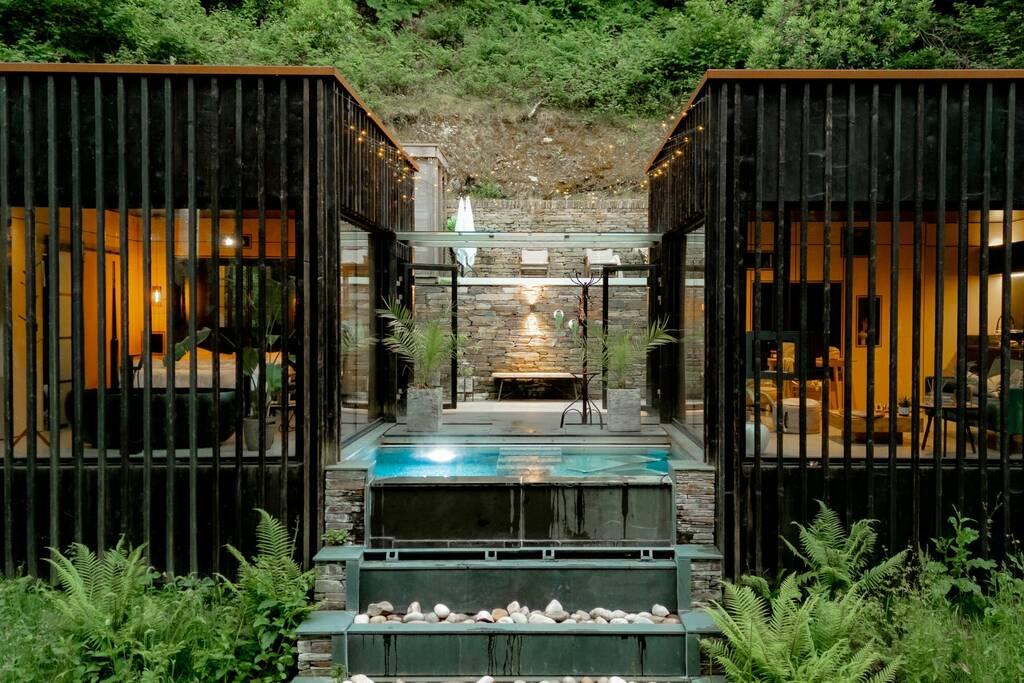 This is glamping in Devon turned up to 11. Hidden beneath a living sedum roof in an ancient woodland, The Spa is all about slowing down. A private heated infinity pool looks out through the trees, while the outdoor sauna, stone bath and woodland showers bring spa energy to the wild.