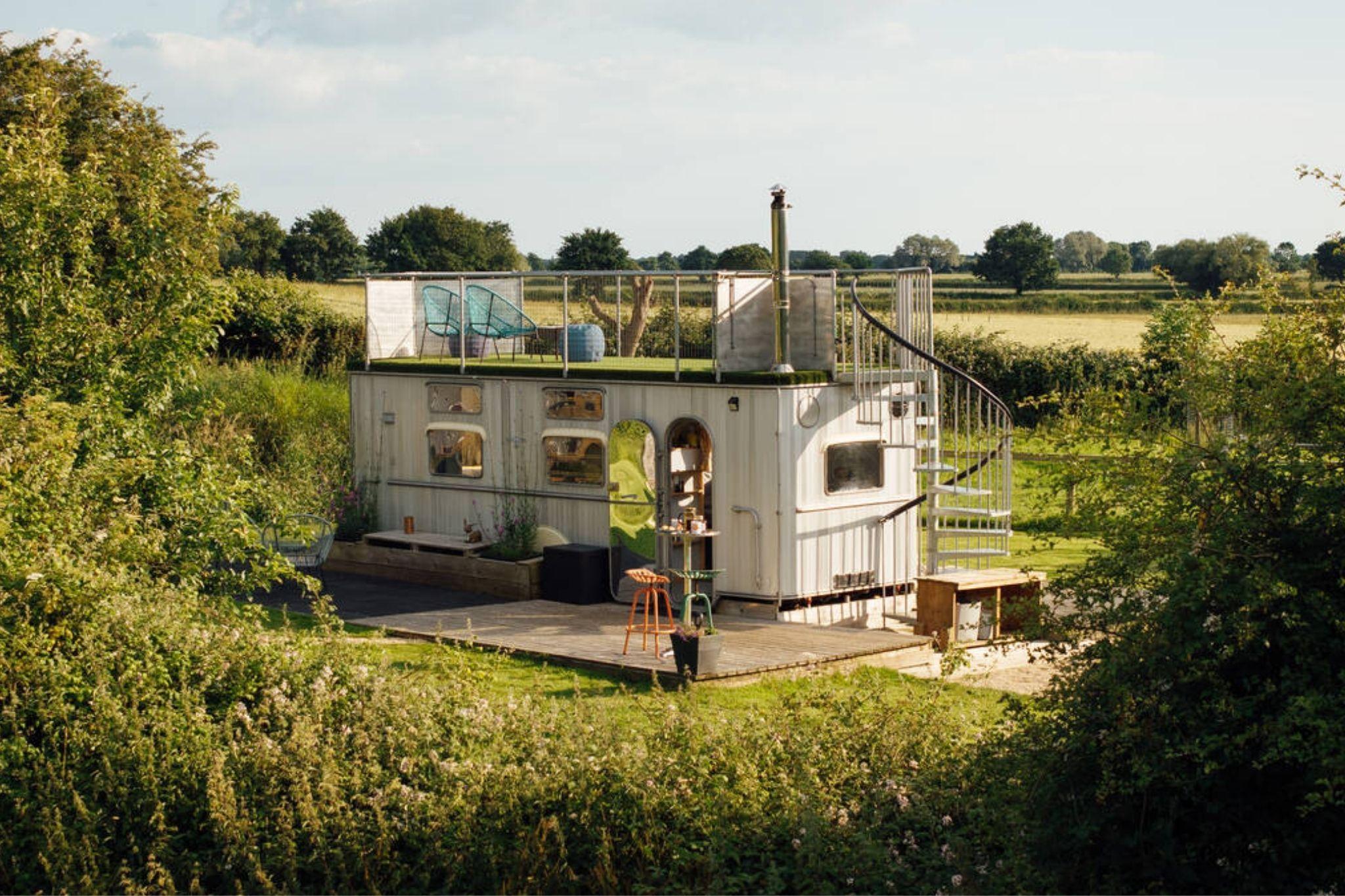 Once the Rolls Royce of caravans, this restored 1950s Warwick Knight is now a polished palace on wheels. The raised roof gives it room to breathe, while upstairs a rooftop garden with beanbags and wood-fired bath brings serious luxury to your glamping game.