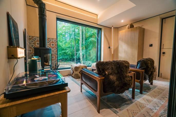 This one of a kind celestial chapel-on-wheels is set in the ancient woodland of the Hesleyside Estate, where deer wander past your window and owls call as night falls. Styled with Victorian cladding, church doors, a copper bath and even a tree trunk chandelier, it’s the kind of space that makes you pause and take it all in.