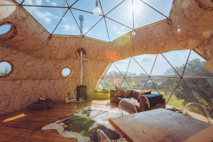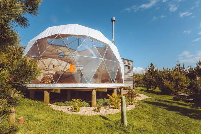 The clue is in the name at Stargazer Pod in an eco-retreat in the North Devon UNESCO biosphere. The spacious dome has huge sections of clear panelling across the walls and ceiling so you can gaze up at the stars from inside as well as outside. Sleeping up to six, it's tucked into a private corner of Loveland Farm with epic views of unspoilt skies and enough space for a relaxing yoga session or a lively games afternoon.